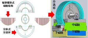 En términos de teoría de diseño de matriz magnética, incluye la innovación de la teoría de diseño de matriz de separador magnético de alto gradiente. El diseño de simulación por computadora realiza el cambio de número a orden, captura máxima y clasificación eficiente. El diseño de matriz magnética de SLon-5000 WHIMS incluye 640 matrices y 1,65 millones de varillas de matriz. La altura de la caja de matriz magnética es 1,44 veces la de la matriz SLon-2500 WHIMS convencional actual, lo que satisface la recuperación máxima de minerales de grano fino.